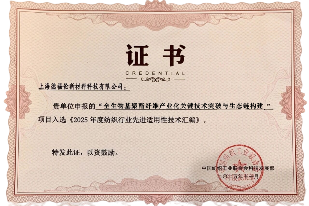 在“双碳”战略驱动下,纺织行业正加速向绿色低碳转型。上海德福伦新材料科技有限公司凭借其全生物基聚酯PEF纤维的突破性创新,于2025年11月27日同日入选两大行业权威汇编。该技术以非粮生物基原料实现源头替代,并通过从原料到工艺的全链条优化,为行业提供了一条可量化、可推广的低碳转型路径,充分验证了生物基材料的规模化应用潜力。