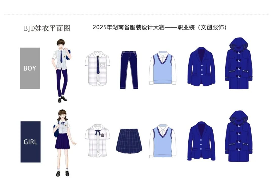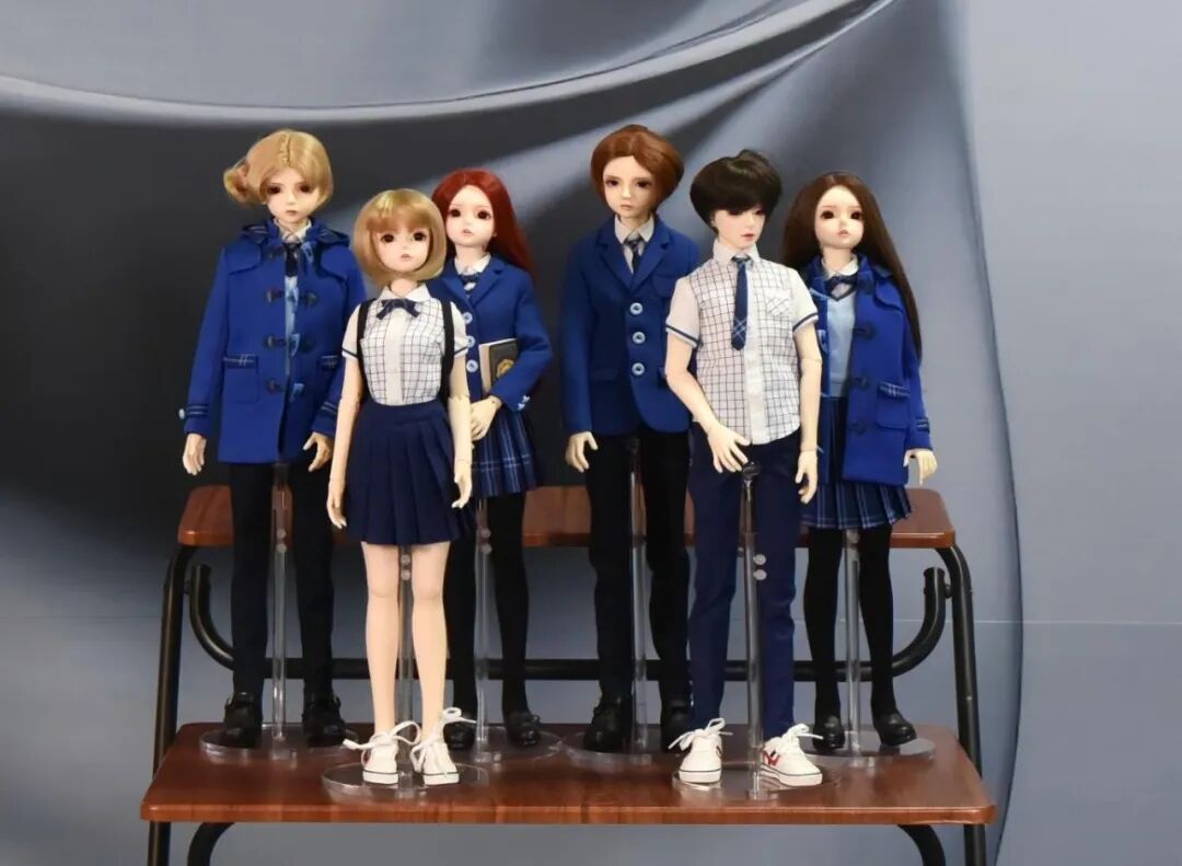 《BJD娃衣系列》以学院风四季服装为灵感,聚焦“悦己消费”趋势下的情感需求——将1/3比例的微型娃衣做到与真实服饰功能、版型精准匹配,通过极致的量体、打版、裁剪工艺,让娃娃成为承载情感的“微型剧场”。作品不仅展现了手工定制的细腻质感,更呼应了BJD文化“共创共生”的内核,为后续衍生服务开发埋下伏笔。