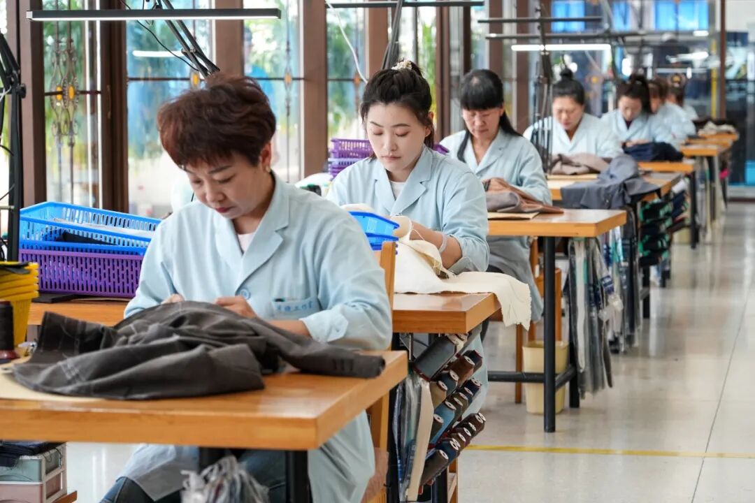 在新质生产力培育方面,集团聚焦产品研发、数字工厂、绿色低碳等关键领域展开技术攻关,与大连工业大学共建 “大杨华服研究院”,深化产学研用深度融合,自主研发千万级版型数据处理系统,数字化效率行业领先;培育了 10名以上行业领军人才、50名以上技术骨干、100名以上技能型人才,形成结构合理、素质优良的人才梯队。同时,集团积极履行社会责任,投入数百万元帮扶援建了墨盘村、赵家村2个村办服装厂,同时通过设立外协配套服务厂点,增加社会就业岗位2700多个,带动区域服装产业发展,为乡村振兴作出重要贡献。