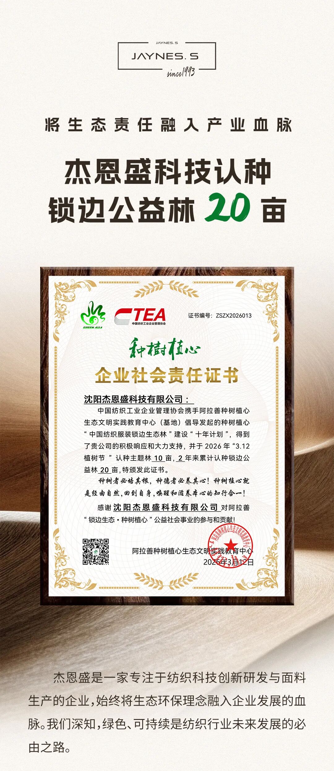 【会员资讯】将生态责任融入产业血脉,杰恩盛科技认种锁边公益林20亩