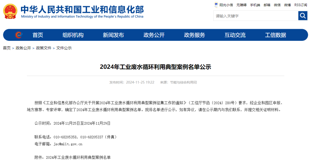 按照《工业和信息化部办公厅关于开展2024年工业废水循环利用典型案例征集工作的通知》(工信厅节函〔2024〕280号)要求,经企业和园区申报、地方推荐、专家评审,确定了2024年工业废水循环利用典型案例名单。现将名单进行公示,如有异议,请在公示期内与我们联系,并提交相关证明材料。公示时间:2024年11月25日至2024年11月29日联系电话:010-68205358,010-68205337(传真)
